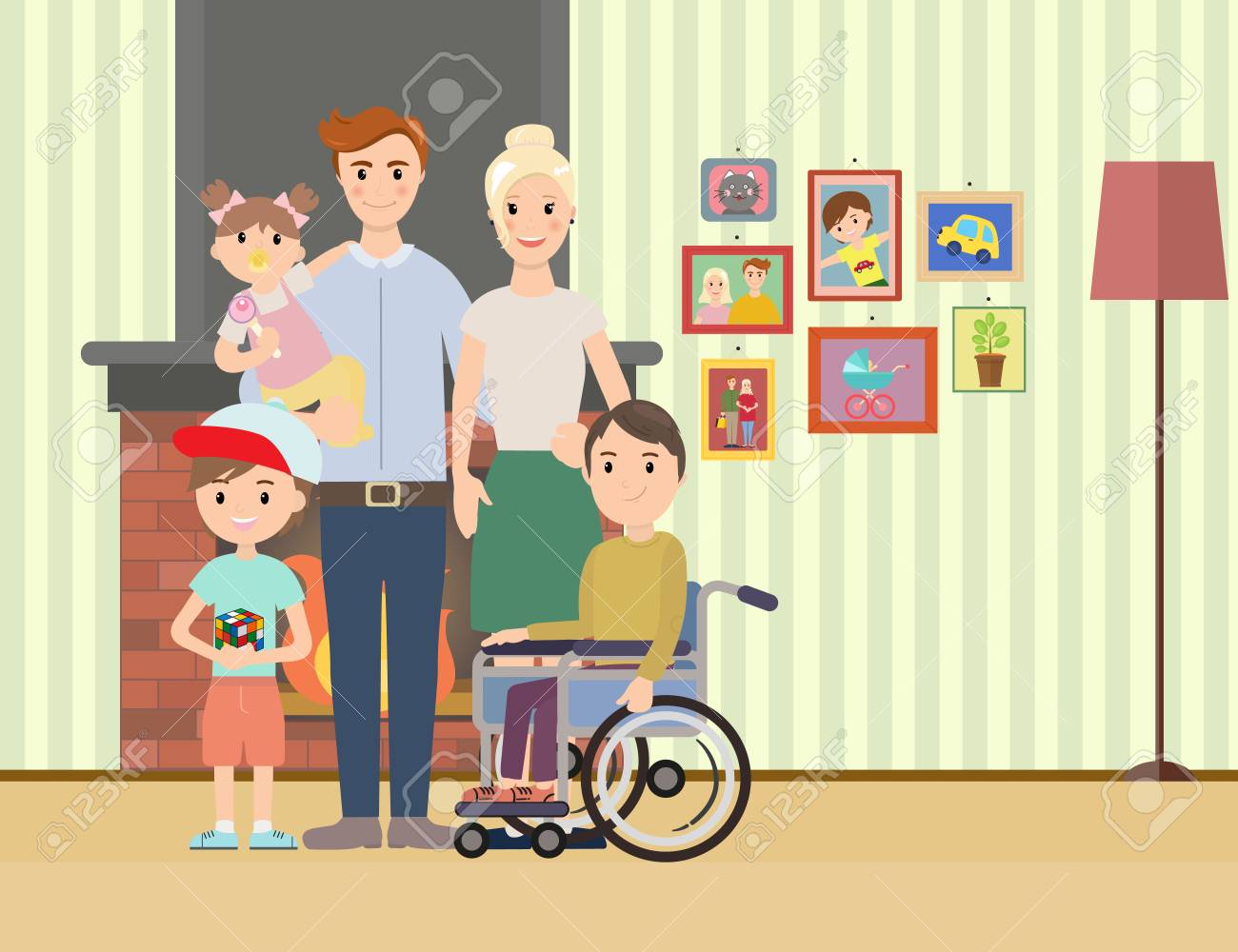 Retrato De Familia Feliz Con Necesidades Especiales Del Niño ...